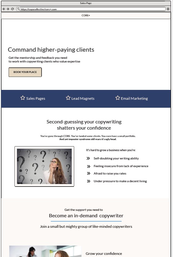 My Approach: The price is a very good offer so this is emphasised early in the page. The connection with grandchildren runs throughout the page to resonate with the target audience and help them see the transformation of using the product.